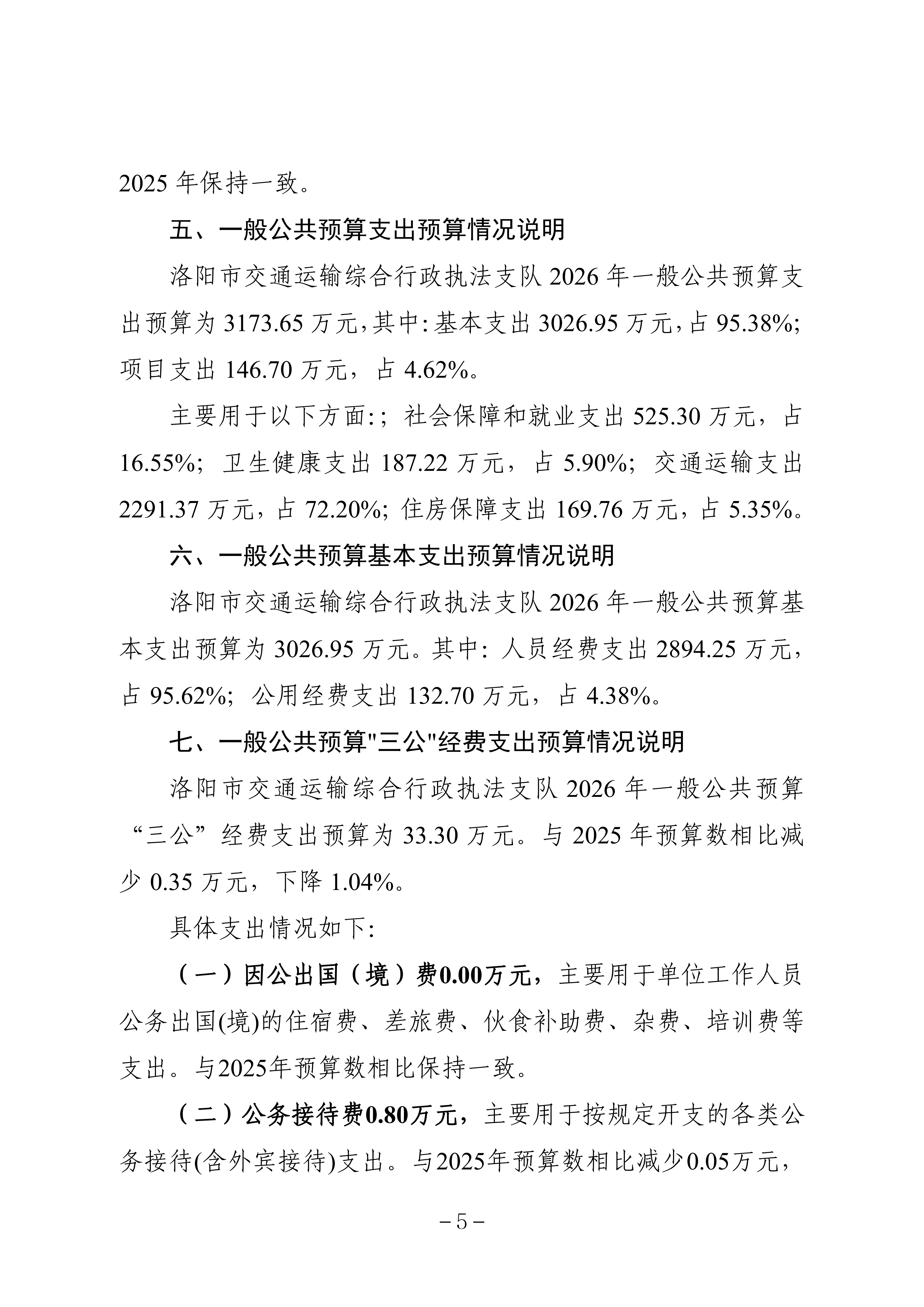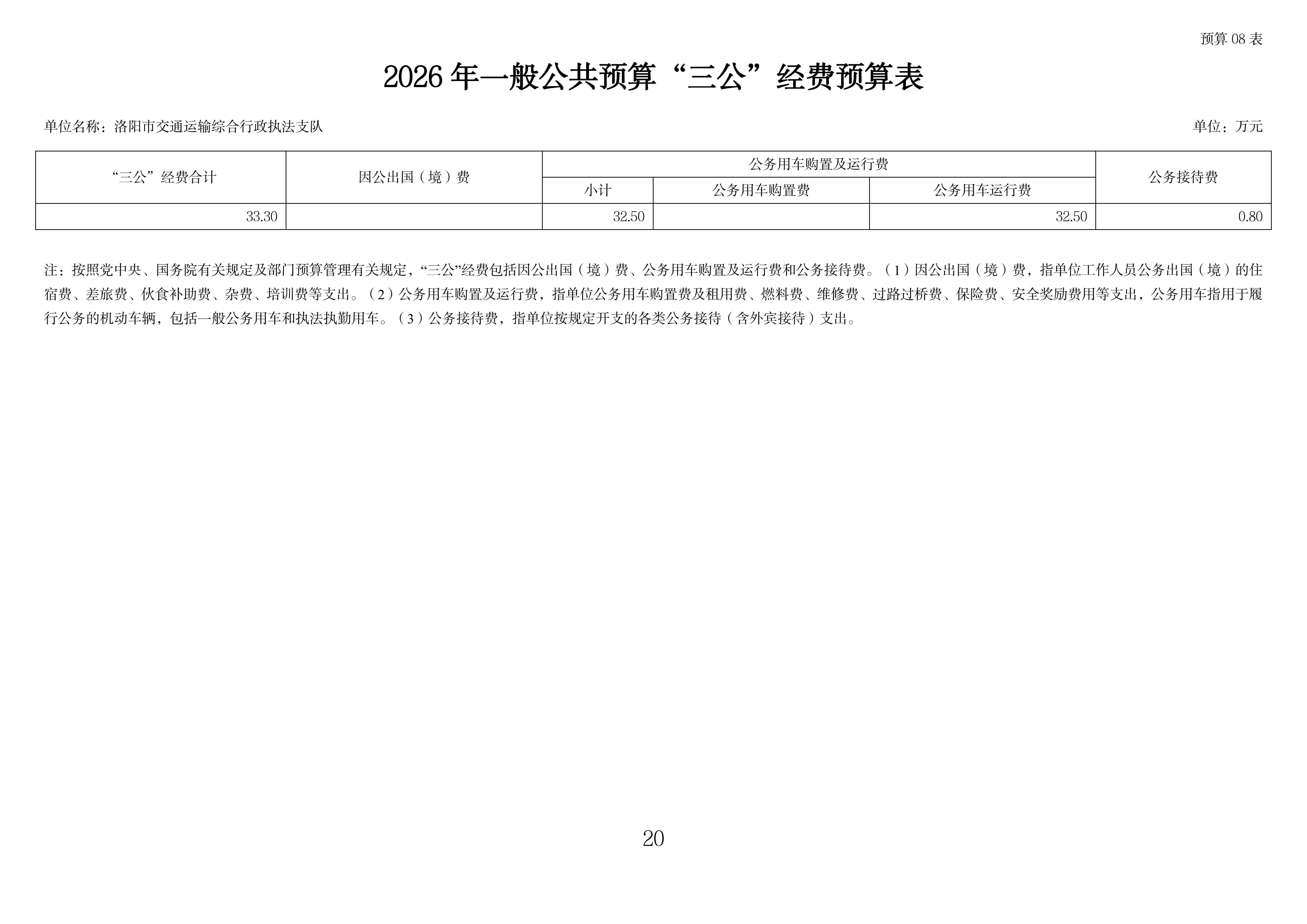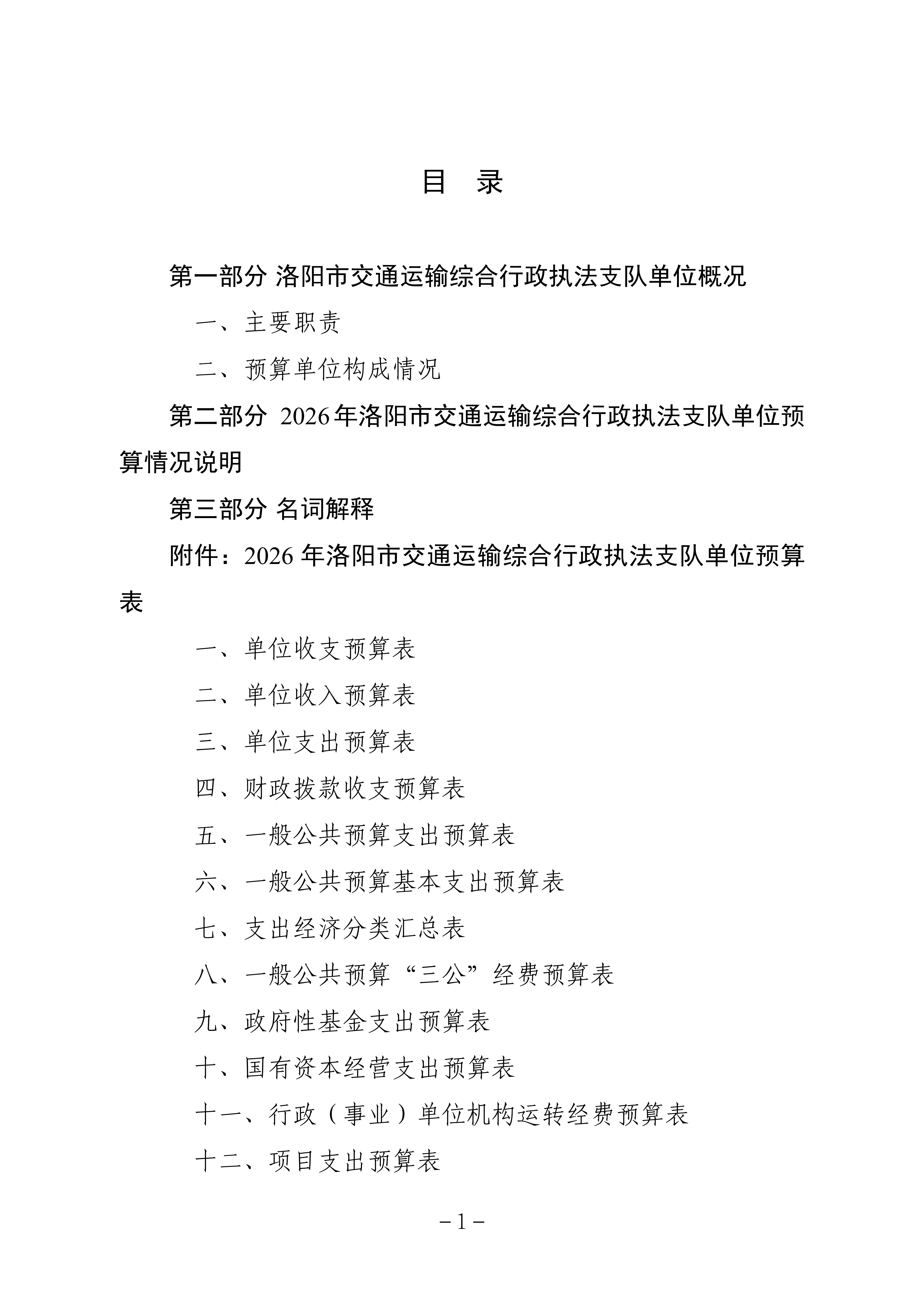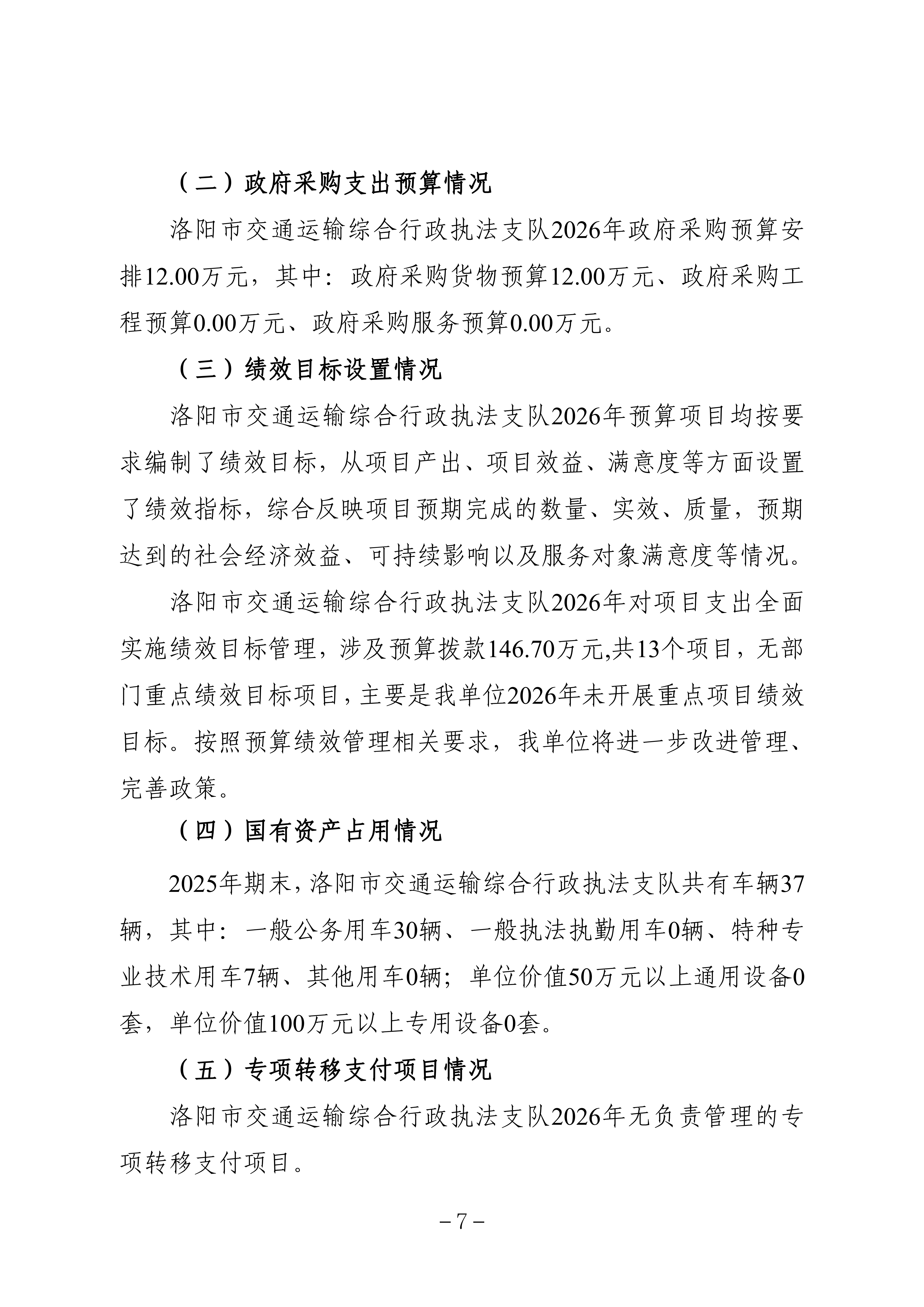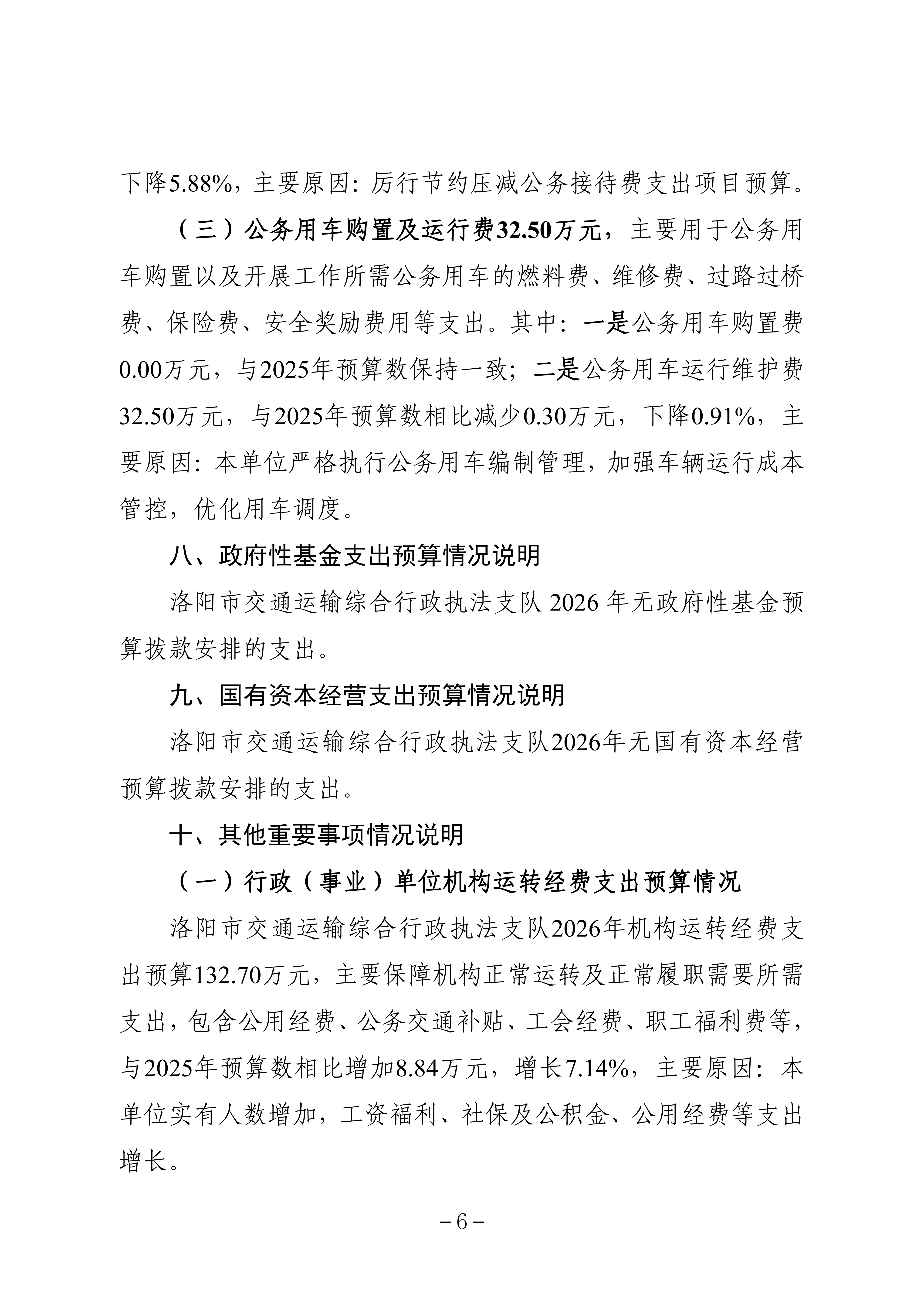 洛阳市交通运输综合行政执法支队2026年度预算公开