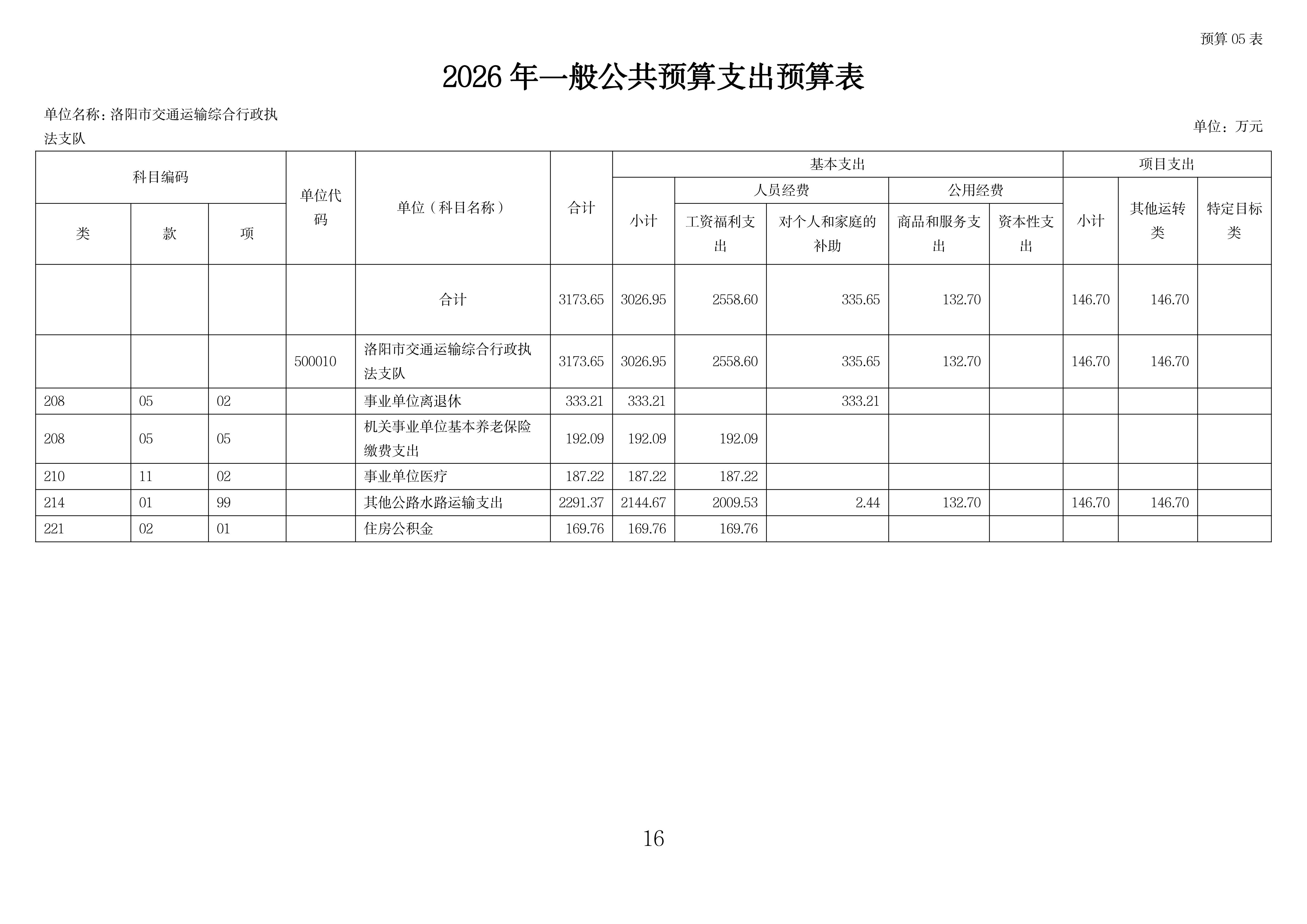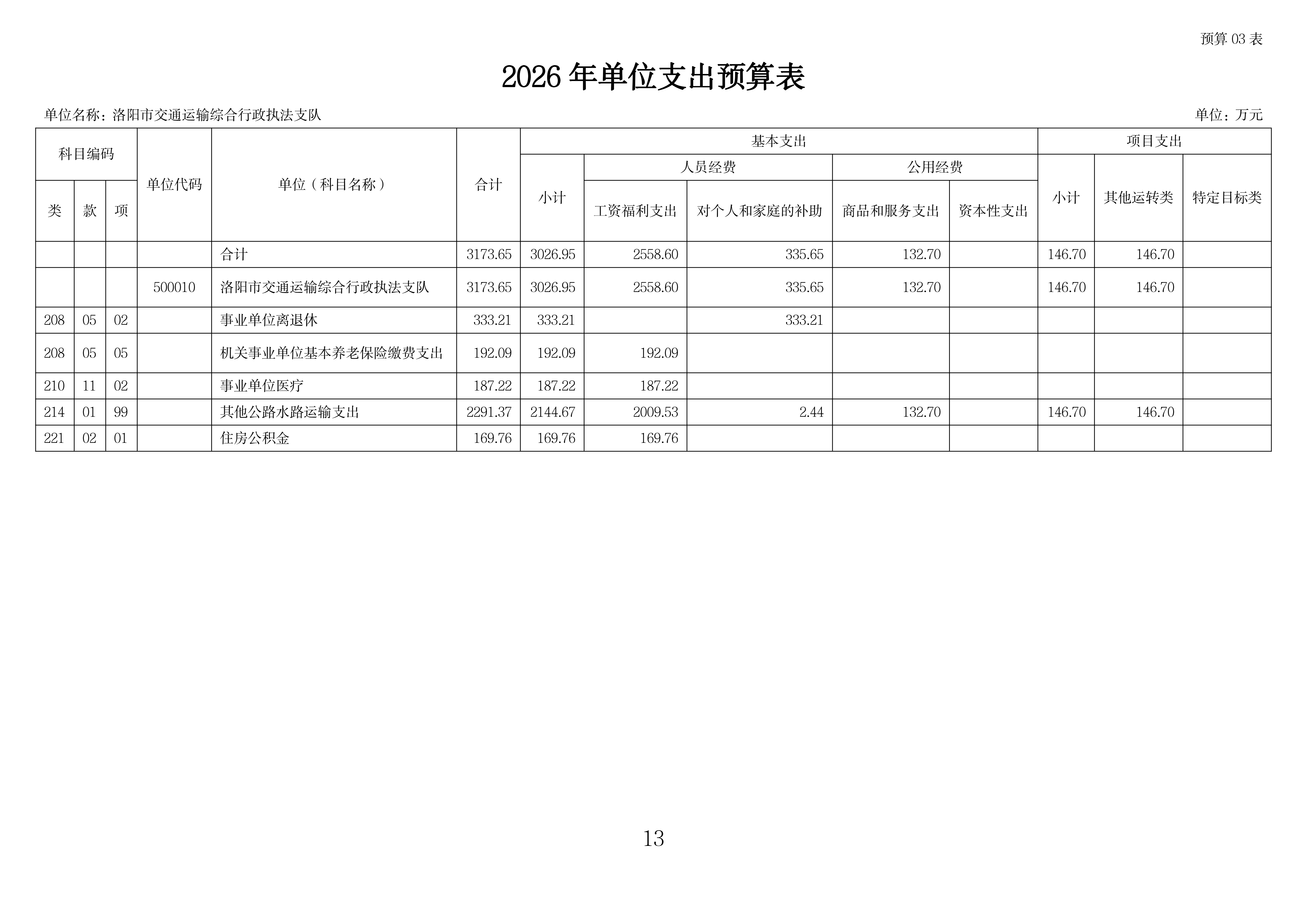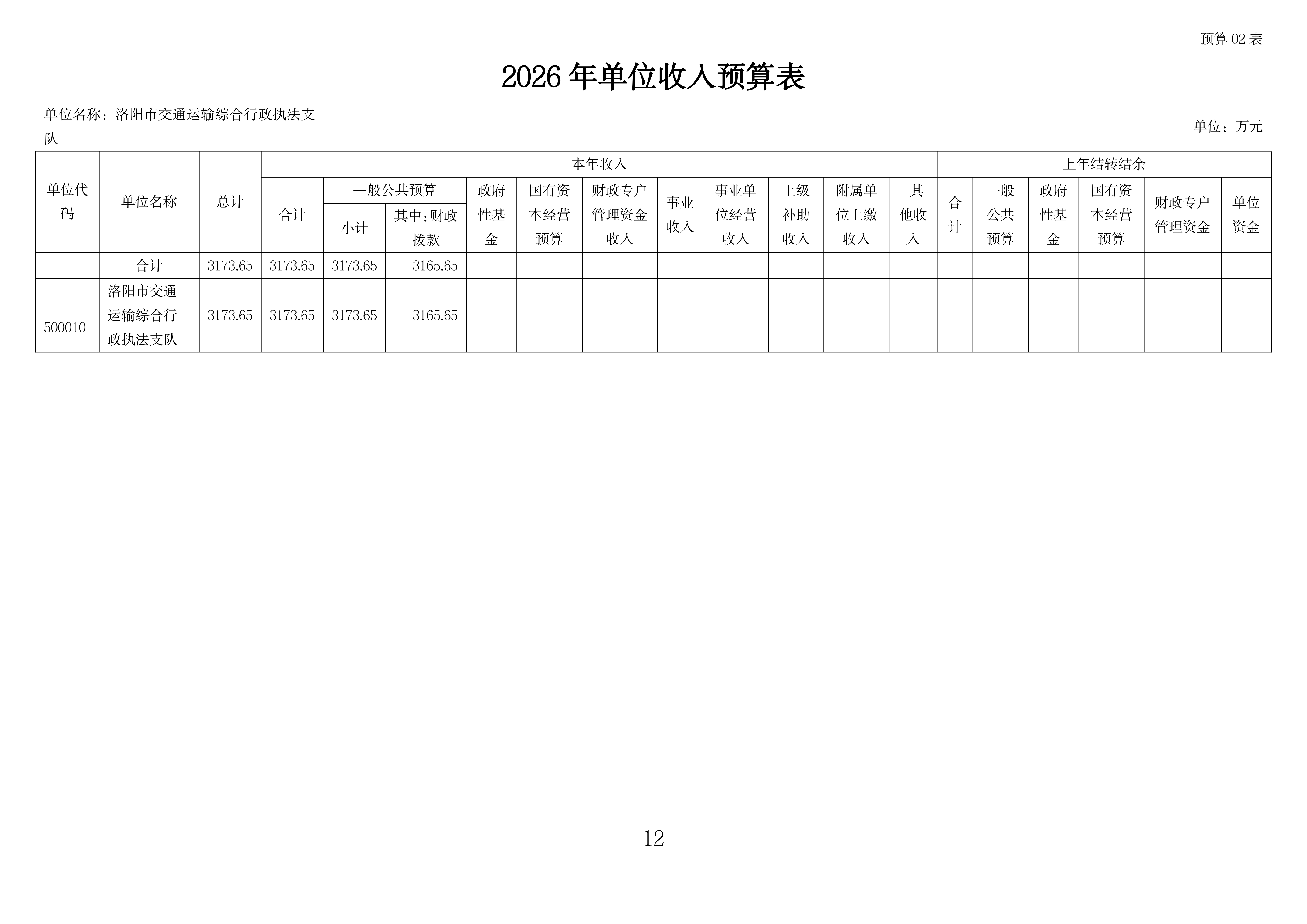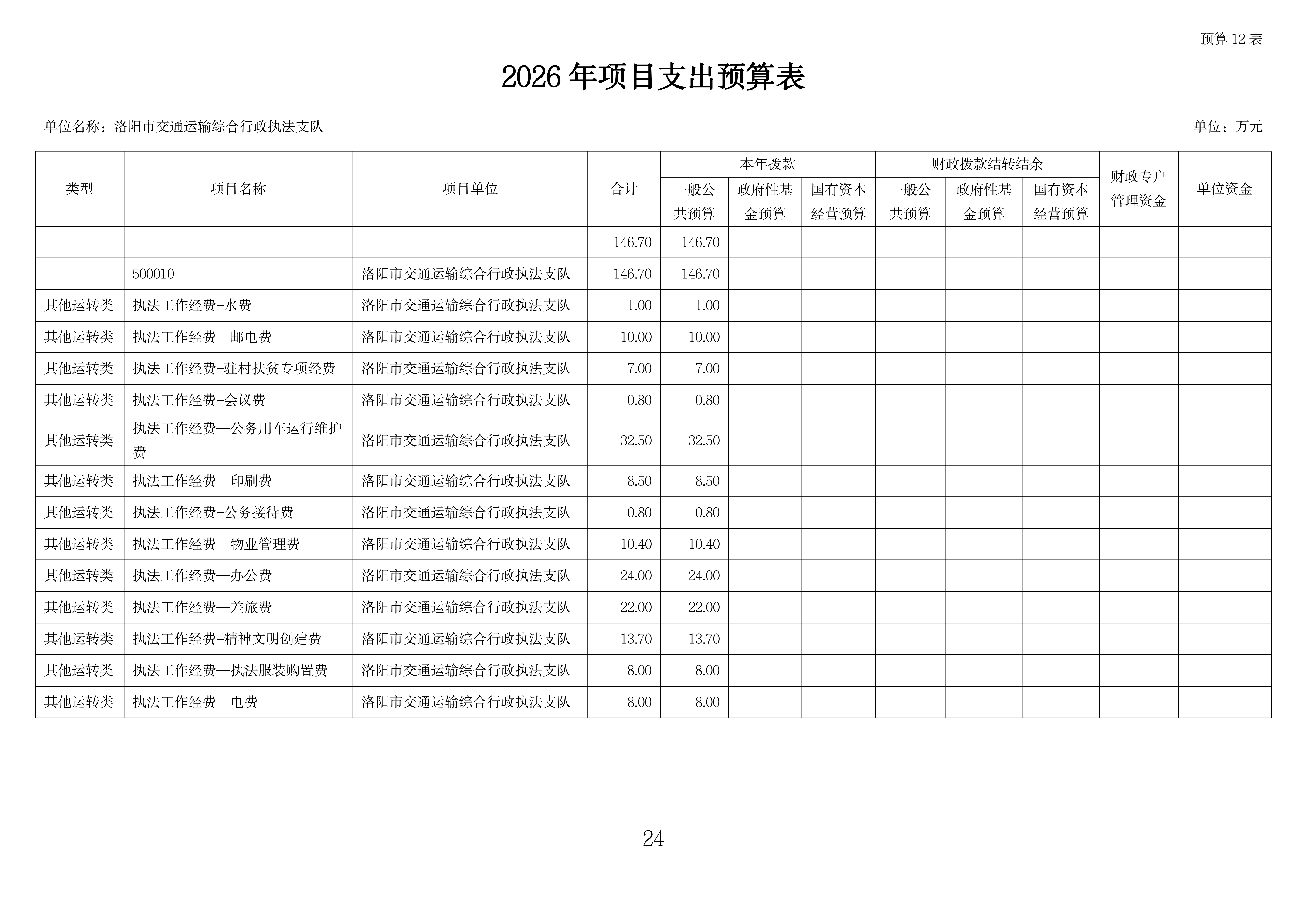 洛阳市交通运输综合行政执法支队2026年度预算公开