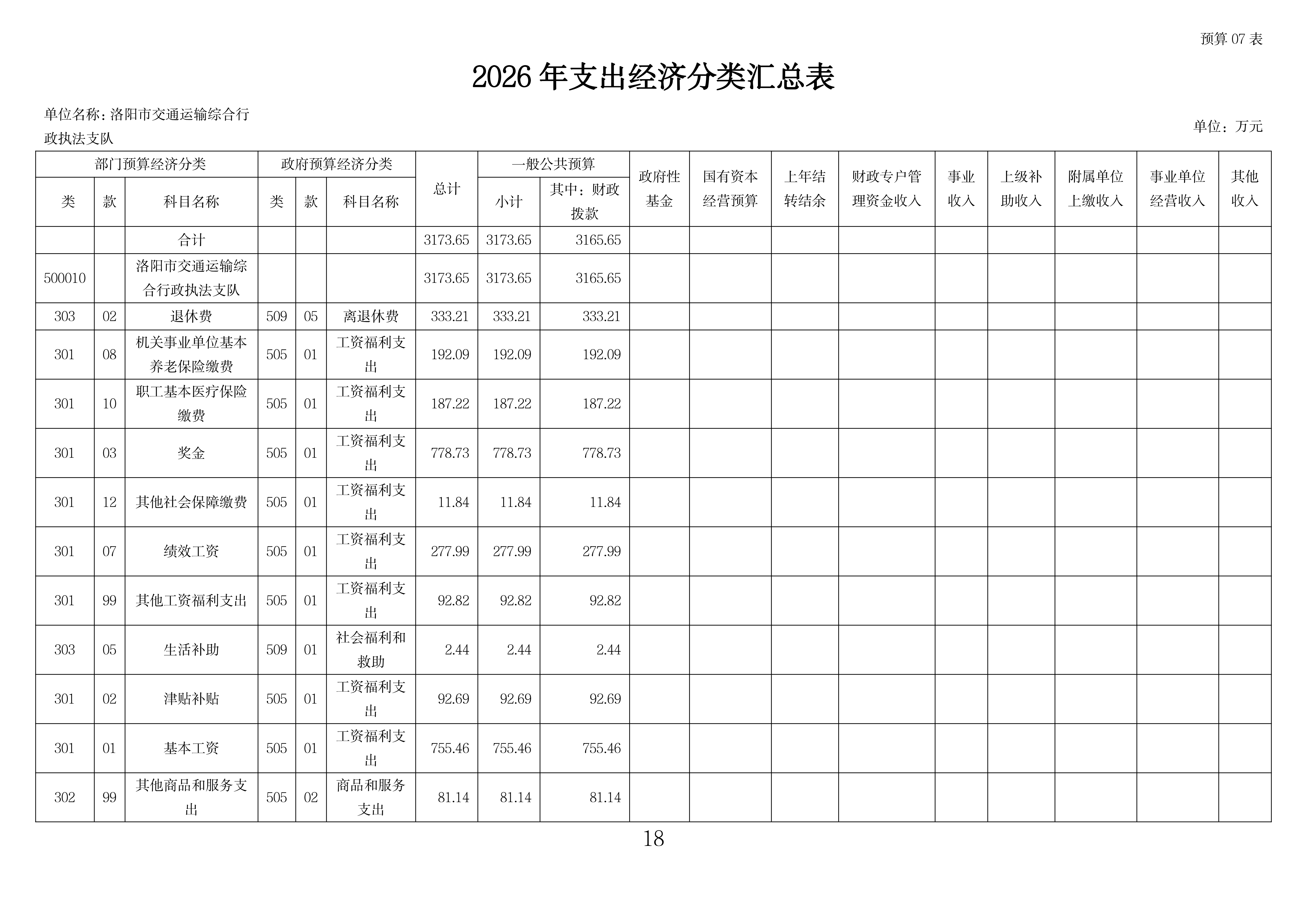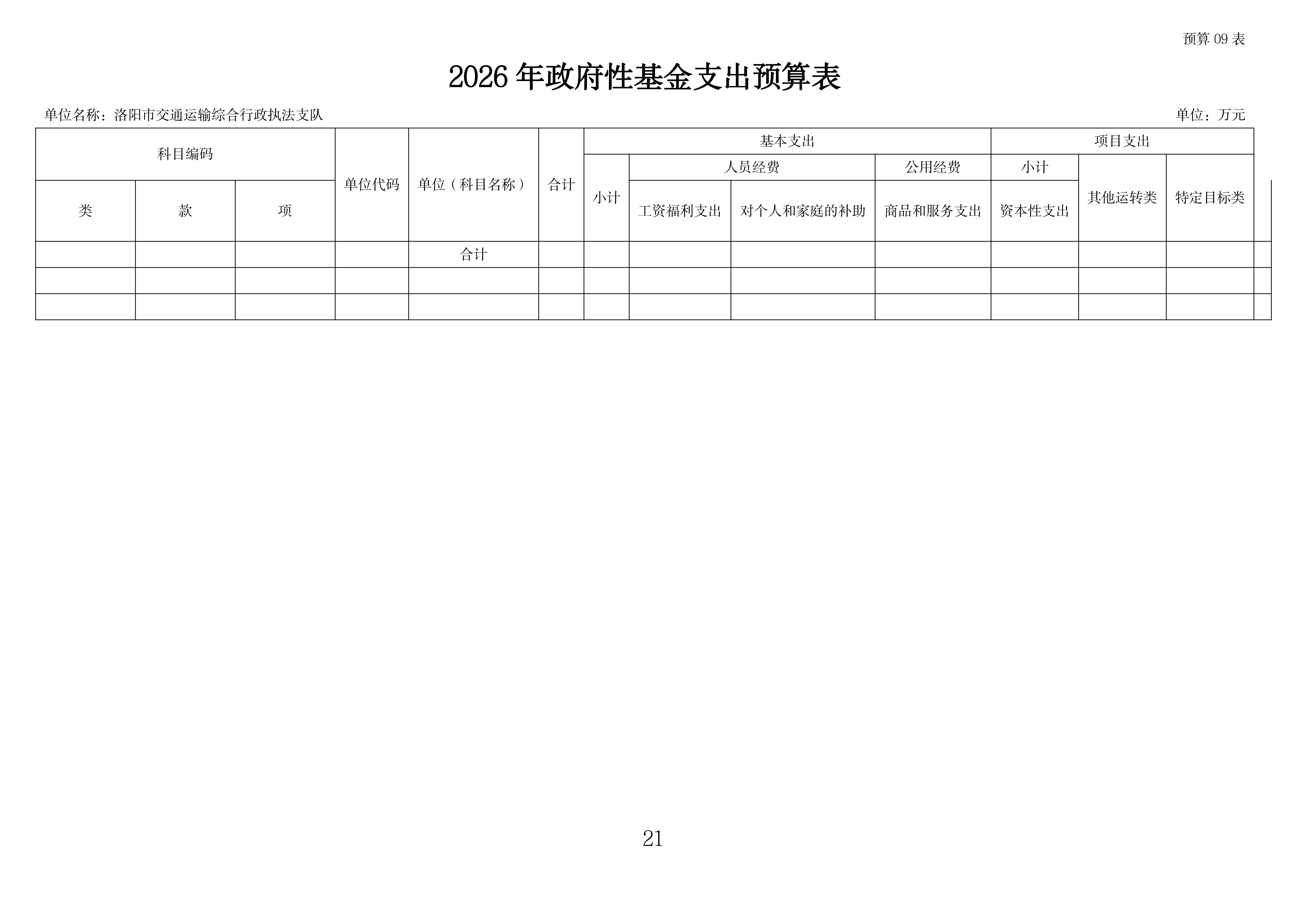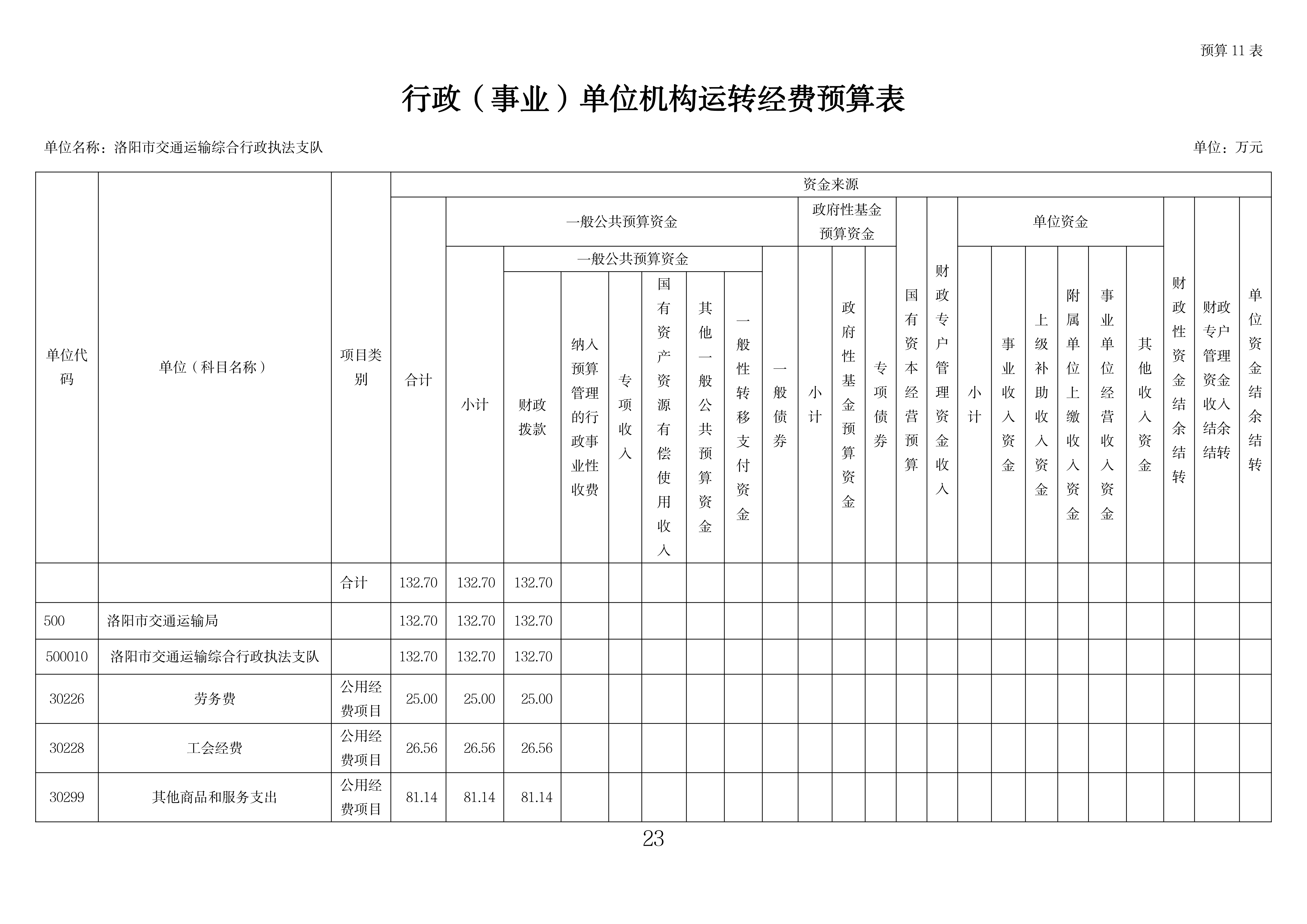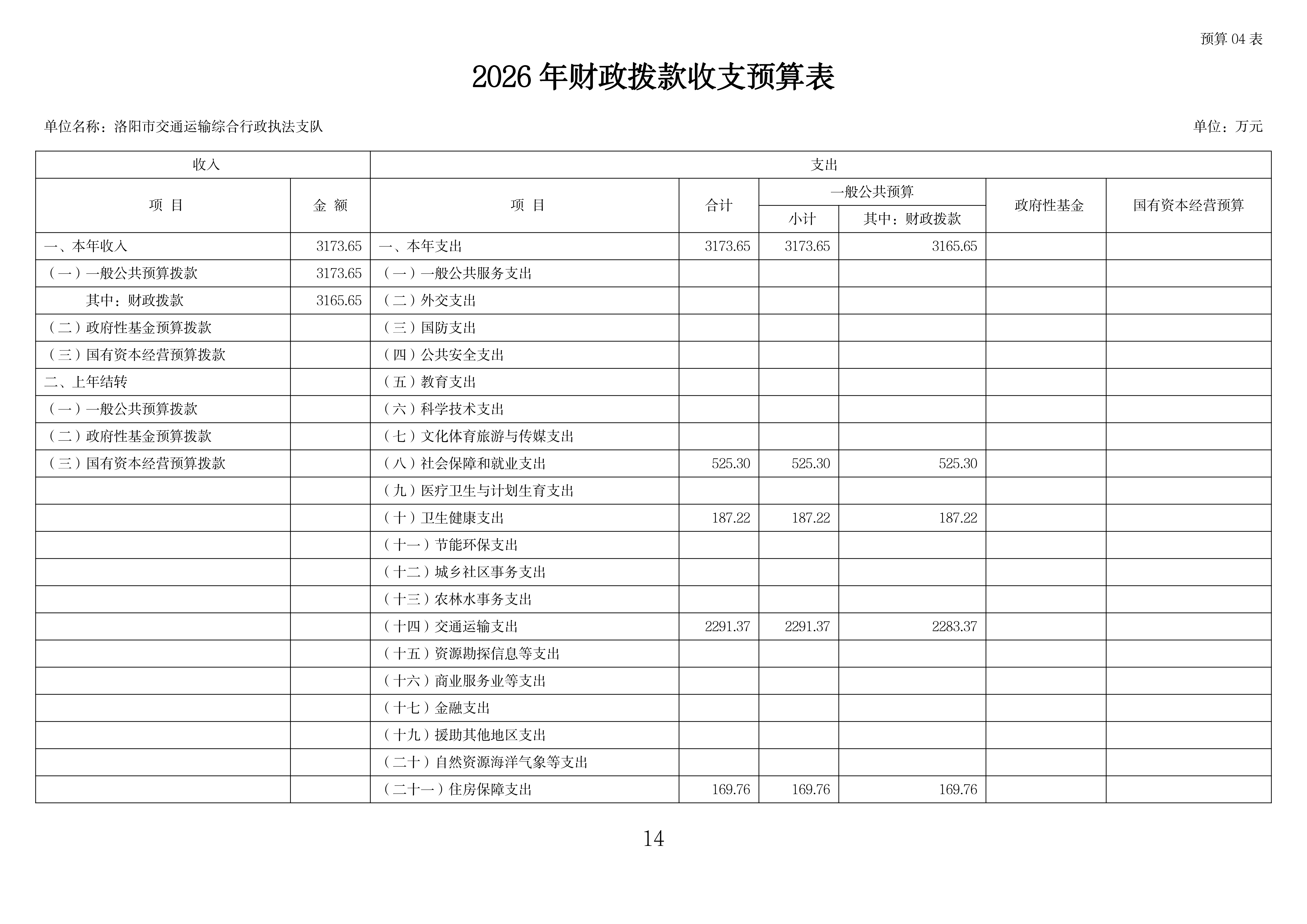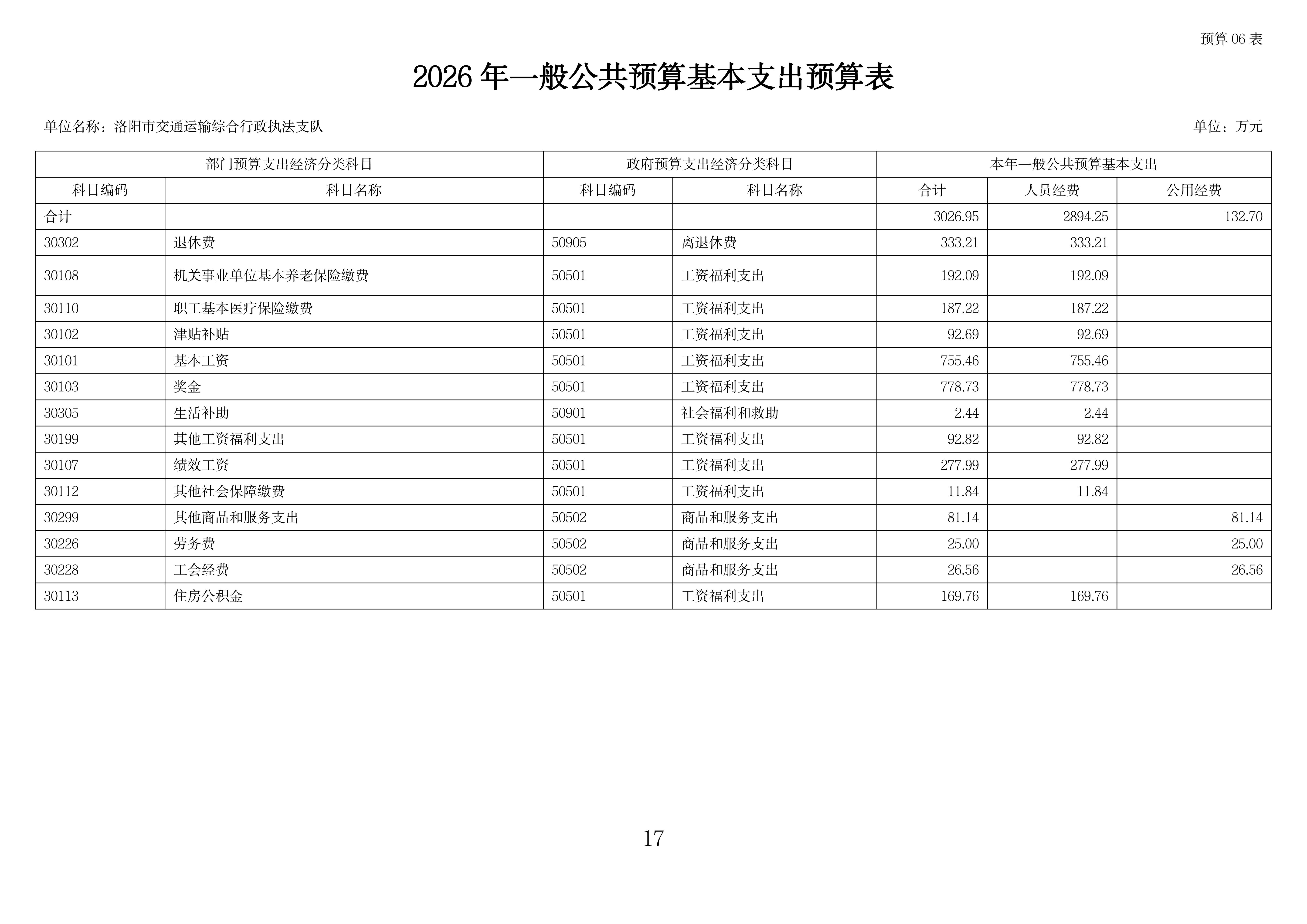 洛阳市交通运输综合行政执法支队2026年度预算公开
